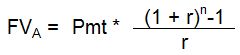 PV = Pmt * [1-(1+r)-n)]/r * (1+r)