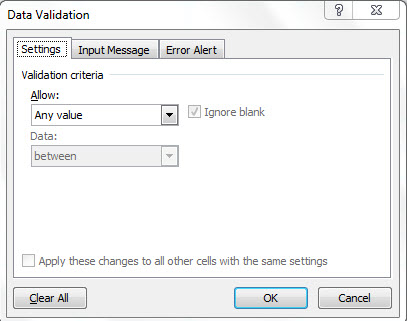 A better way to accomplish this was discussed in part two of this Data Validation Series, where I showed how using a named range allows for a cleaner worksheet. I showed how listing the values you want to allow for a specific cell (field) on another sheet, then naming this range so that you can refer to it in the Data Validation window is cleaner and more efficient than listing them in the Data Validation window itself or separately in a list, but on the same sheet. Read more of this post