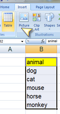 2. Select the range containing the values; in the address bar, type the desired name; in our example, we use “animals”